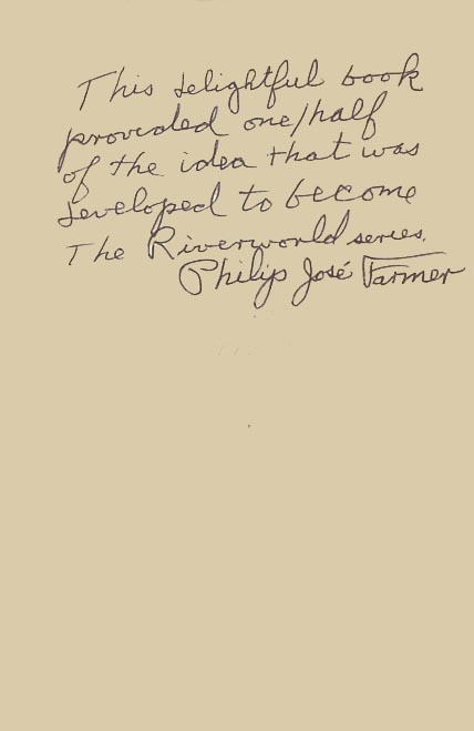 This book by John Kendrick Bangs, published in 1895, about famous people gathering together in the afterlife in the "gentleman's club" like house-boat was one of Philip José Farmer's inspirations for the Riverworld series. Below is a scan of a copy of the book inscribed by Philip José Farmer.