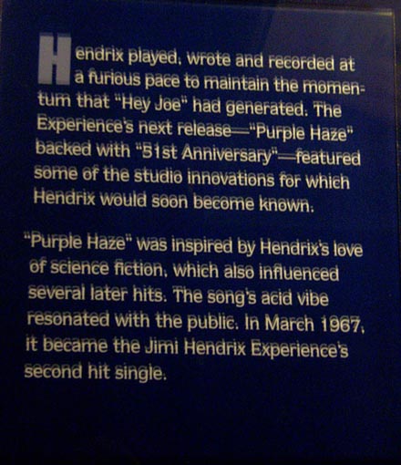 In the Jimi Hendrix section of the Experience Music Project (EMP) in Seattle, you will find the following display about the song Purple Haze.